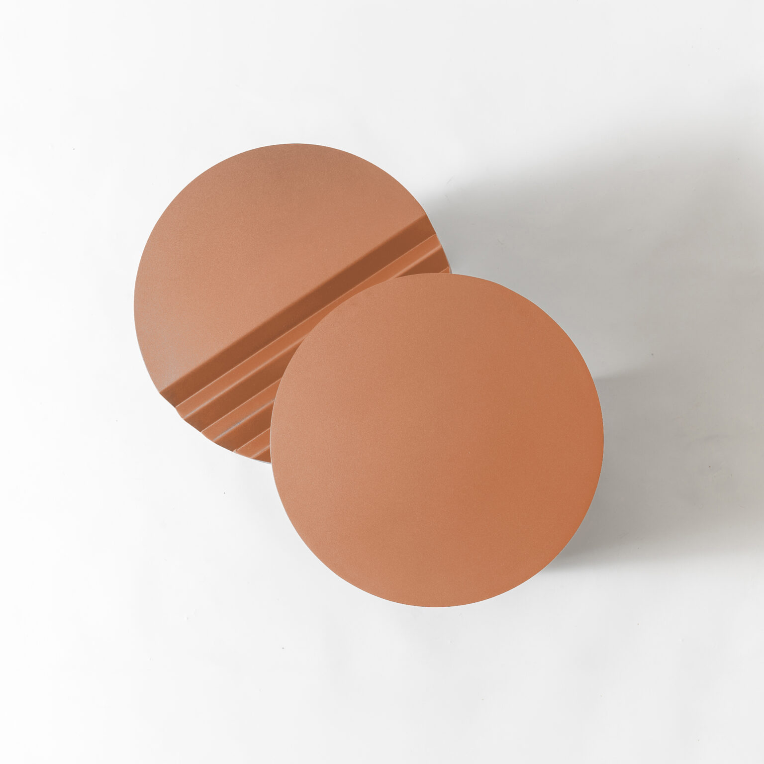 OKNO, crafted from durable 1.5mm steel sheet, has a unique feature that lies in its folded top surface, which adds a touch of elegance and functionality to its design. The folds on the top surface allow it to serve as a side table, providing a convenient platform to hold items like books, magazines, jewellery or a cup of coffee. However, its potential extends beyond being just a side table. The adaptable nature of OKNO enables it to be used in combination with other objects from the same series, enhancing its versatility. Particularly noteworthy is OKNO’s compatibility with UPPA. When paired with UPPA, OKNO transforms into a multi-purpose unit, offering additional functionality and aesthetics.